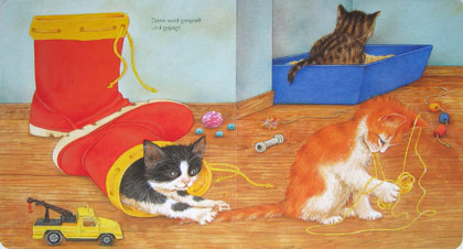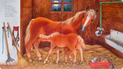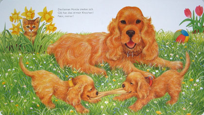 Nicht nur Schauen, sondern auch erstes Sprechen, Freude am Wiedererkennen und Benennen - erste Bildergeschichten und das Erkennen von Zusammenhängen.