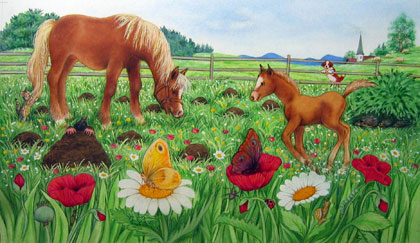 KLEINKINDER Kleinkinder bis 3 Jahre erinnern sich noch lange an ihre Pappbilderbücher. Nicht nur Schauen, sondern auch erstes Sprechen, Freude am Wiedererkennen und Benennen - erste Bildergeschichten und das Erkennen von Zusammenhängen. Pappbilderbücher für kleine Entdecker. Auch Kleinkinder wollen schon viel wissen und lernen. Durch meine liebevolle und detailgenaue Form der Darstellung erreiche ich neben der Wissensvermittlung auch, den Kindern Respekt vor Tieren und Natur zu vermitteln. |